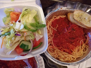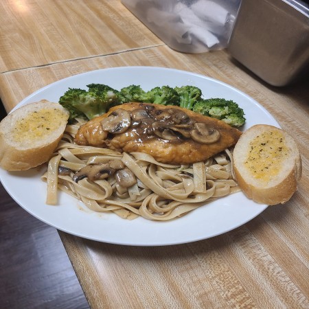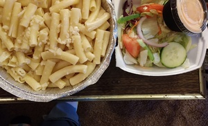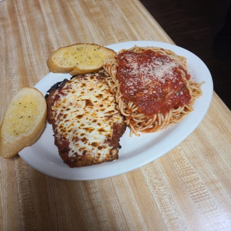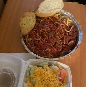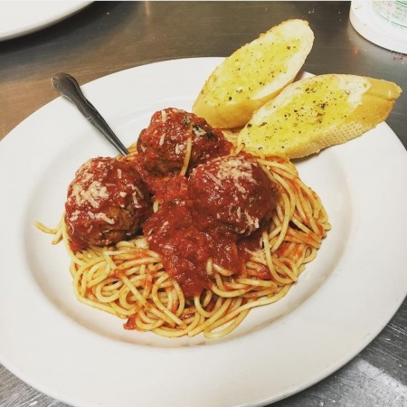 All entrees served with garlic bread and garden salad. Spaghetti, Ziti, Fettuccini, or Angel Hair. Substitute Caesar Salad for $1.00 or Greek Salad for $1.50 more.