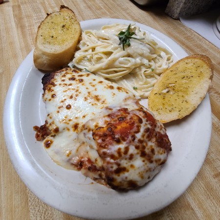 Served with Garden Salad and Garlic Bread. Substitute Caesar Salad for $1.00 or Greek Salad for $1.50 more.