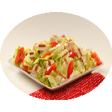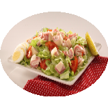 Lettuce, Tomato, Onion, Pickle Spear, Crackers, Chopped Egg, & Two Packs of Dressing.